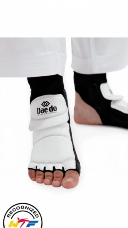 Daedo fotskydd används för träning eller tävling inom Taekwondo. Observera att detta fotskydd är inte användbart tillsammans med Daedo elektroniska TK-strike system. Skyddet är bekvämt och skyddar foten på utövare samt erbjuder stöd till ankeln.