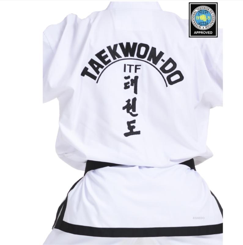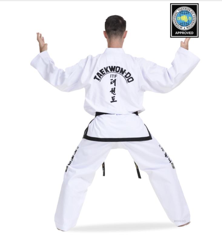 Öppen jacka enligt ITF Style. Broderi på baksidan och sidorna av byxorna. Elastisk midja.