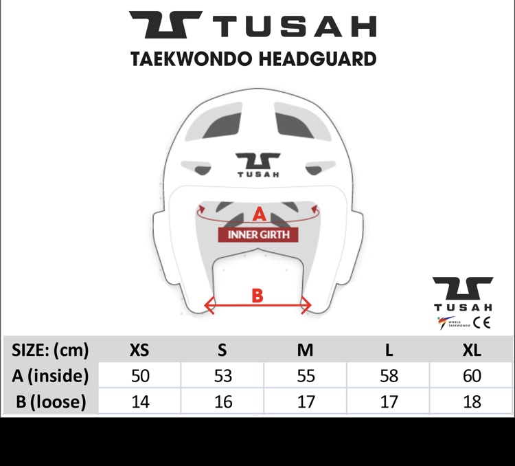 Tusah Head Guard skyddar mot slag och skador på huvudet under Taekwondo-träning och tävlingar.
